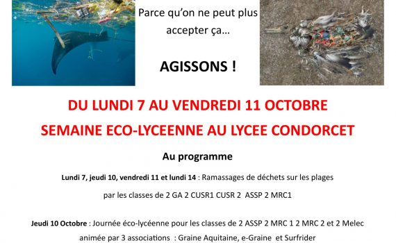 Le lycée met en place dès cette année un projet éco-lycéen. Il va concerner toutes les classes de seconde. Des actions seront menées au sein des classes, mais aussi lors de semaines et de journées spécifiques en octobre et février. Une restitution de tous les projets aura lieu lors de […]
