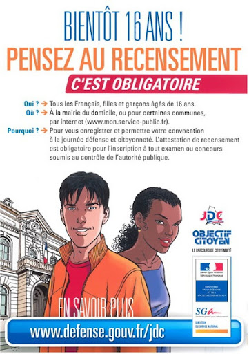 Depuis le 1er janvier 1999, tous les jeunes français, garçons et filles doivent se faire recenser soit :